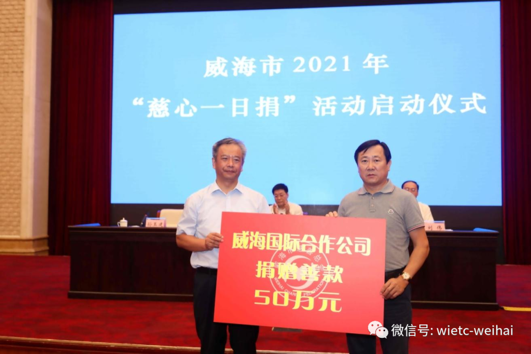 近日,威海市2021年“慈心一日捐”活動(dòng)啟動(dòng)儀式在東山賓館隆重舉行。公司工會(huì)主席李軍海出席會(huì)議,代表公司現(xiàn)場(chǎng)舉牌捐贈(zèng)50萬元,又一次展示公司奉獻(xiàn)愛心、回饋社會(huì)的責(zé)任與擔(dān)當(dāng)。