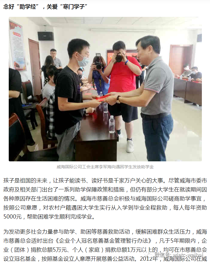 5.威海國(guó)際公司攜手市慈善總會(huì)做善事:念好“助學(xué)經(jīng)” 譜寫“愛心曲” -【一點(diǎn)資訊】