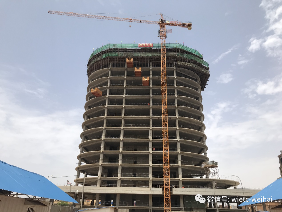該項目位于布基納法索首都瓦加杜古市,總建筑面積約16000平方米,建筑總高度為57米,地下1層、地上15層,是目前布基納法索的最高建筑,也是當(dāng)?shù)氐牡貥?biāo)性建筑之一。本項目在單次混凝土連續(xù)澆筑數(shù)量、大尺寸高空懸挑混凝土結(jié)構(gòu)支撐體系施工等方面,創(chuàng)造了該國建筑行業(yè)的多項紀(jì)錄。開工至今,項目組克服疫情影響、政局不穩(wěn)等重重困難,搶工期,保質(zhì)量,抓安全,降成本,多措并舉,確保了主體結(jié)構(gòu)順利封頂。