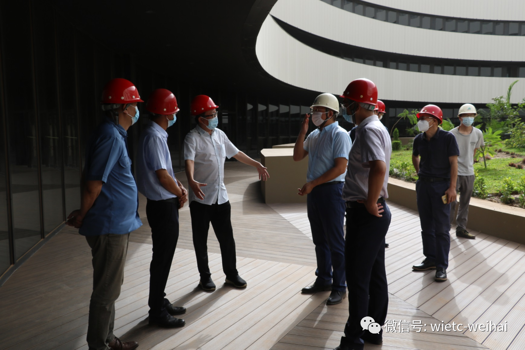 吳司長和肖大使一行先后參觀了主樓入口大廳、地下圓形會議室、內(nèi)環(huán)走廊、三層辦公室及室外景觀,聽取了項目規(guī)模、進展等情況匯報。在內(nèi)環(huán)走廊處,吳司長著重了解了圓形會議室周圍景觀屋面的防水做法,對公司嚴格的施工質(zhì)量控制措施予以高度評價。