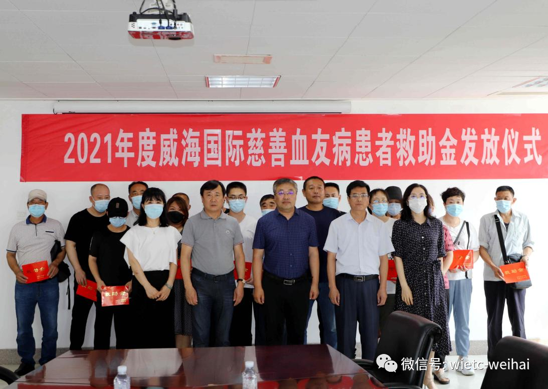 6月29日,威海國際慈善血友病患者救助金發(fā)放儀式在公司五樓會議室舉行。威海市社會救助服務(wù)中心主任、慈善總會名譽(yù)副會長王明源,市慈善總會辦公室副主任劉書青,公司工會主席李軍海出席儀式,并向20名患者發(fā)放了8.78萬元救助金。這是威海國際慈善愛心基金連續(xù)10年資助全市血友病患者,截至目前,該救助項(xiàng)目累計(jì)支出106.72萬元,救助患者170人次。