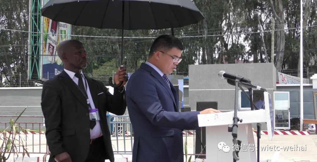 典禮上,國(guó)家水利電力部長(zhǎng)、國(guó)家自來(lái)水公司總經(jīng)理、世界銀行代表等相繼致辭,表達(dá)了對(duì)項(xiàng)目竣工的祝賀和對(duì)當(dāng)?shù)鼐用裆钏讲粩嗵岣叩拿篮闷谕?。剛果(金)正威公司董事長(zhǎng)屠大軍應(yīng)邀代表公司致辭,表達(dá)了對(duì)總統(tǒng)、總理、各政府官員、業(yè)主及監(jiān)理團(tuán)隊(duì)給予項(xiàng)目大力支持的感謝。他表示,威海國(guó)際公司始終致力于服務(wù)當(dāng)?shù)卣?,服?wù)當(dāng)?shù)厝嗣?,不斷改善?dāng)?shù)鼗A(chǔ)設(shè)施狀況。我們將時(shí)刻準(zhǔn)備好,充分發(fā)揮在工程建設(shè)領(lǐng)域的豐富經(jīng)驗(yàn)和管理、技術(shù)優(yōu)勢(shì),協(xié)助剛果(金)政府完成更多有益于增進(jìn)當(dāng)?shù)厝嗣窀l淼母黝?lèi)項(xiàng)目。