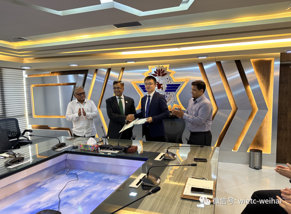 李猛總經(jīng)理(右二)與孟加拉民航局主席(左二)簽署項目合同
