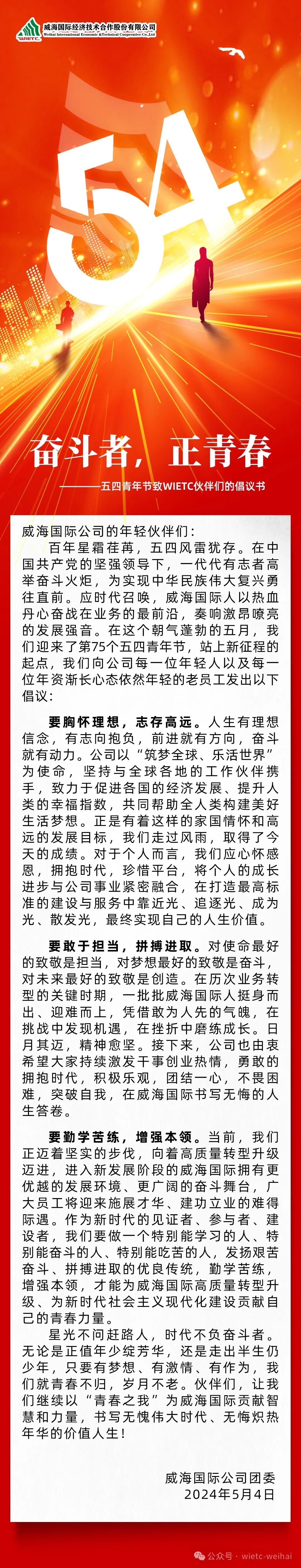 奮斗者,正青春——五四青年節(jié)致WIETC伙伴們的倡議書(shū)