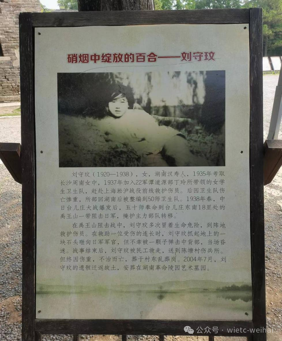 臺兒莊大戰(zhàn)紀念館,位于棗莊市臺兒莊城區(qū)西南郊,是為了紀念抗日戰(zhàn)爭初期著名的臺兒莊戰(zhàn)役而修建,紀念館莊嚴肅穆,館前的三十八級臺階意味著1938年發(fā)生了震驚中外的中日臺兒莊大戰(zhàn),二十四根立柱支撐著白色天棚,象征著中華民族頂天立地,屹立于世界民族之林。在講解員的引導(dǎo)下,黨員們依次參觀了展廳中陳列的臺兒莊大戰(zhàn)中日雙方相關(guān)資料、戰(zhàn)斗場景照片和數(shù)百件有歷史意義的紀念實物,追憶了當(dāng)年臺兒莊戰(zhàn)役一寸山河一寸血的悲壯革命歷程,聆聽了抗日先烈們?yōu)榱嗣褡褰夥藕蛧覐?fù)興拋頭顱灑熱血的英雄事跡。抗日先烈們百折不撓的堅定信念、匹夫有責(zé)的家國情懷、寧死不屈的民族氣節(jié)、血戰(zhàn)到底的英雄氣概,讓每一位黨員深受震撼,也堅定了我們傳承紅色基因、弘揚民族精神的意志和決心。