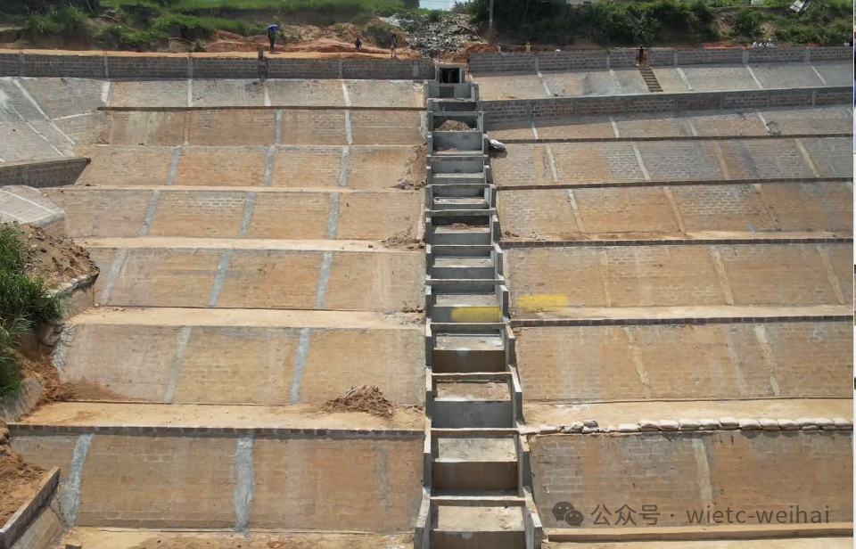 臺階式護(hù)坡整齊堅固,確保道路今后不會被沖刷破壞